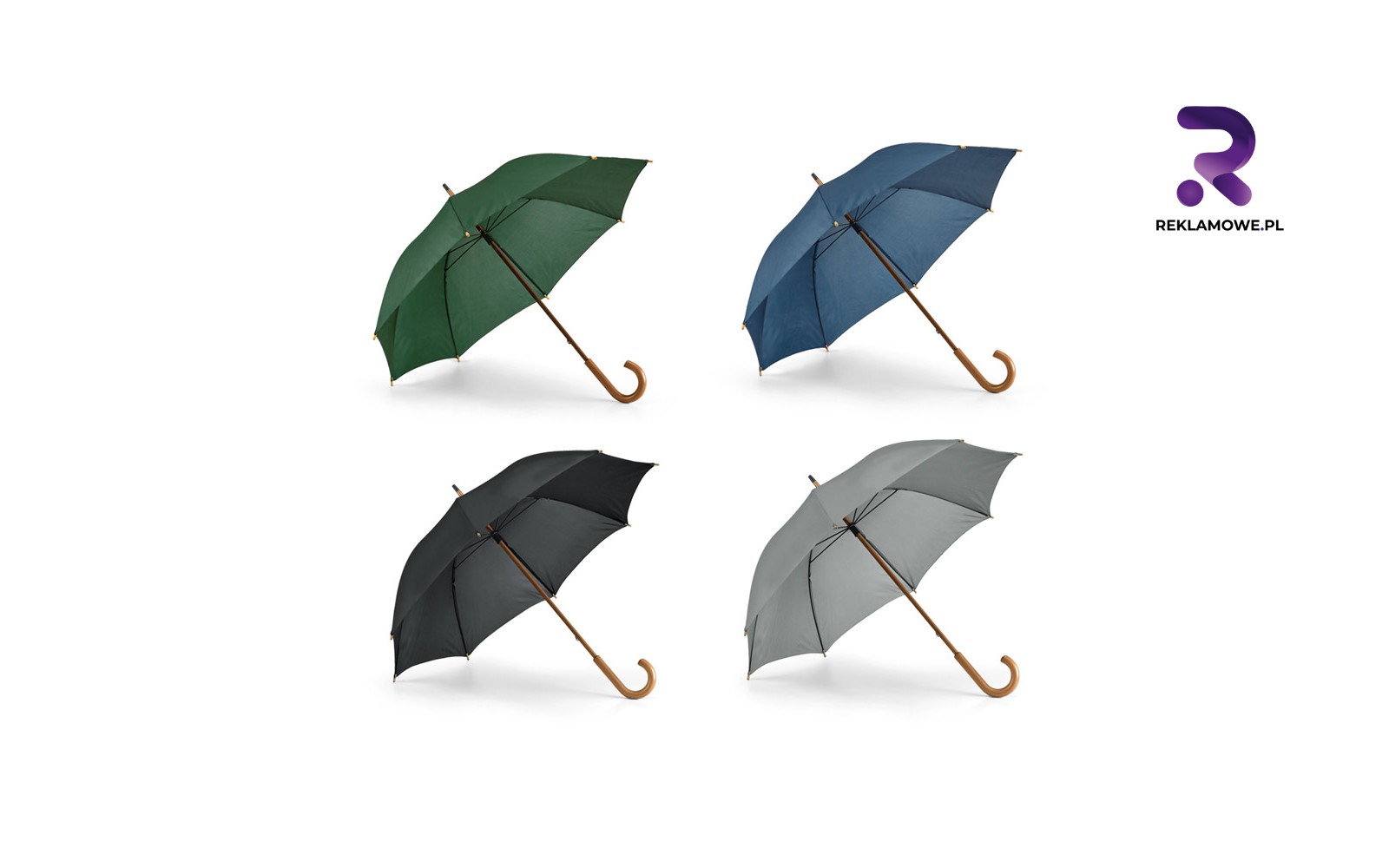 • Parasole sztormowe – wzmocnione włókno szklane i elastyczne żebra przetrwają podmuchy do 100 km/h, więc gadżet służy latami. Trwałość równa się długiej promocji, a klient zapamiętuje markę, której parasol „nigdy się nie łamie”.