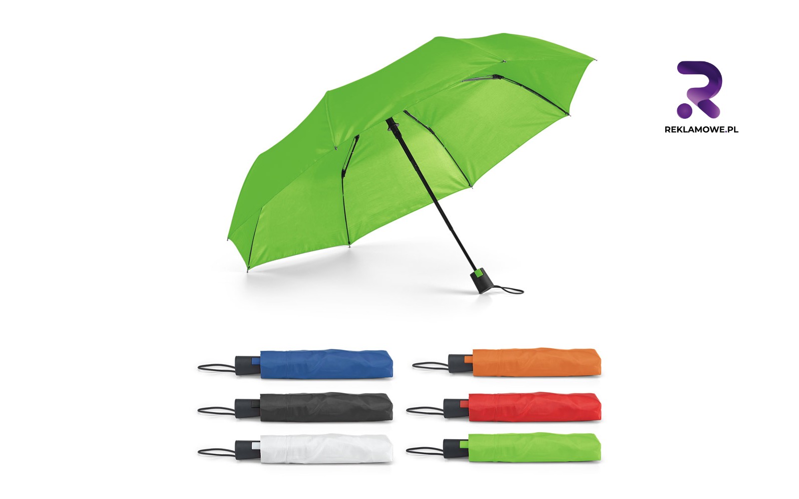 • Parasole automatyczne – błyskawiczny mechanizm otwierany jednym przyciskiem sprawia, że użytkownik doceni wygodę już przy pierwszej kropli deszczu. Wyeksponowane logo pojawia się natychmiast, podkreślając nowoczesny, przyjazny charakter marki nawet w pośpiechu porannego spaceru.