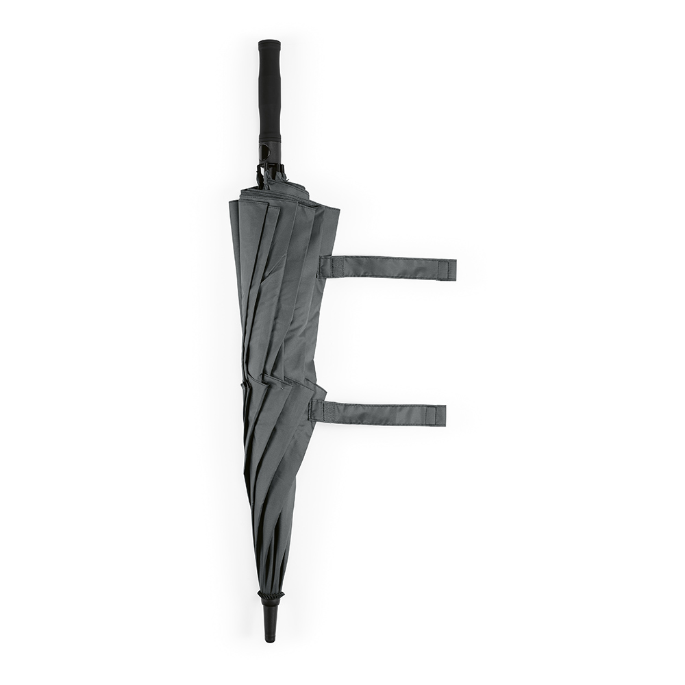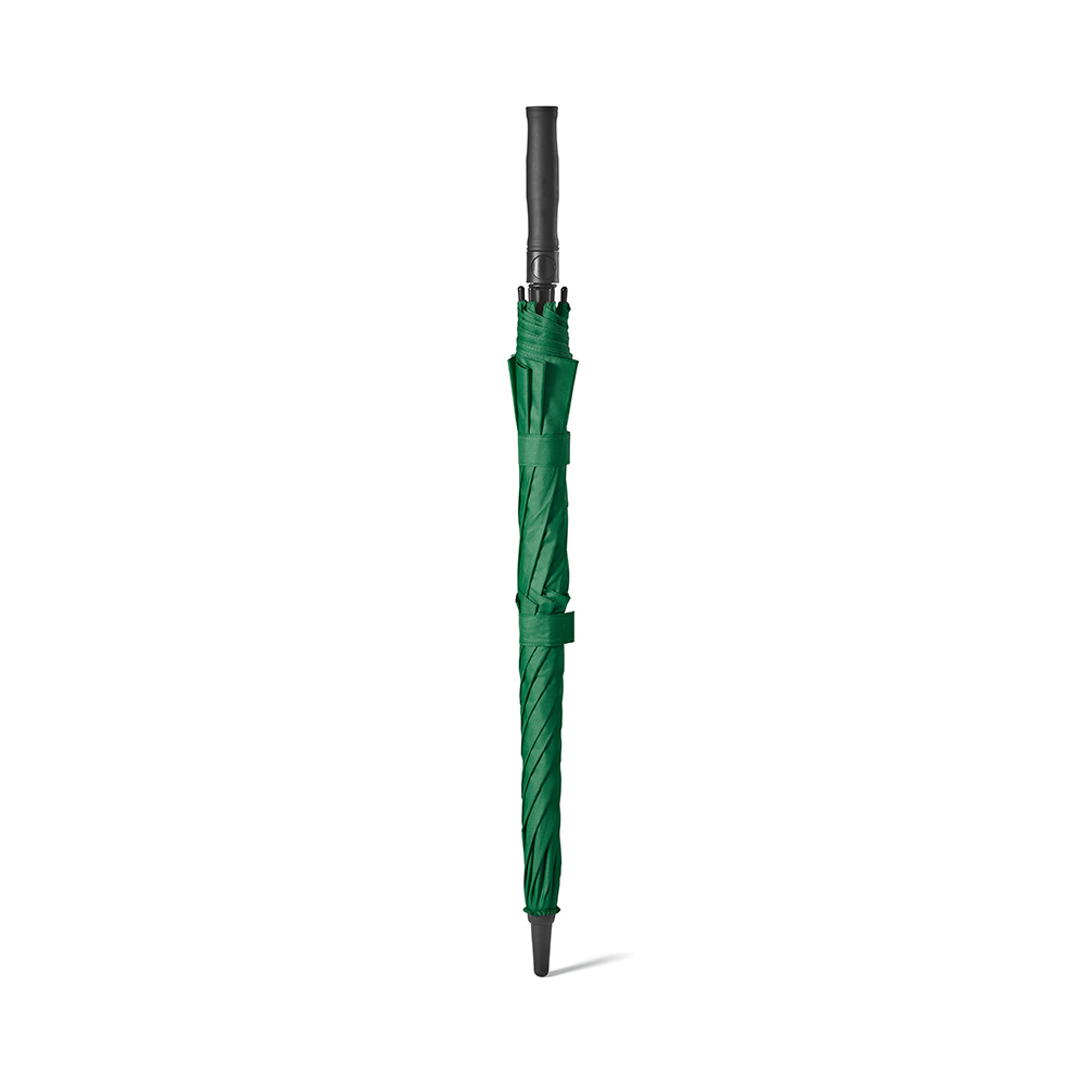 Idealny dla wymagających klientów szukających ekologicznych opcji, parasol ten ma kopyto pokryte materiałem z recyklingowanego poliestru (rPET) i jest oferowany w estetycznej, również ekologicznej torbie rPET. Dostępny w różnych kolorach – od ciemnoszarego, przez czarny, ciemnozielony, biały, niebieski po czerwony, idealnie pasujący do różnorodnych gustów i preferencji.
