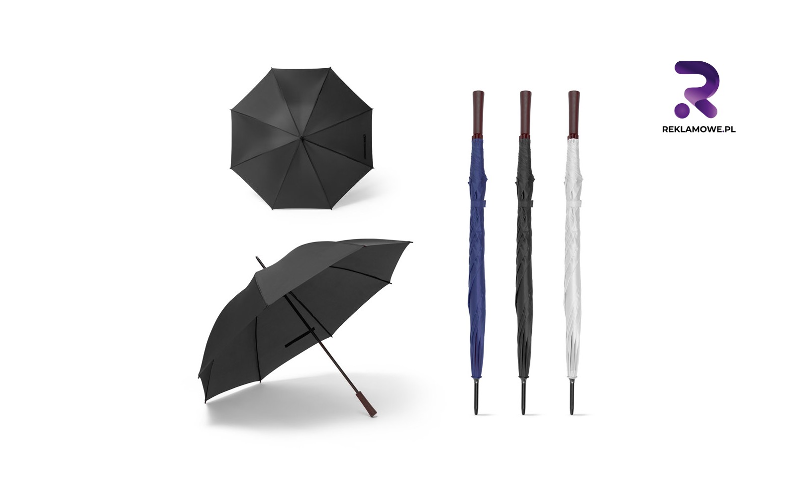 - Parasole golfowe – imponują wielkością oraz solidnym stelażem, dlatego sprawdzają się nie tylko na polu golfowym, ale też podczas eventów plenerowych. Duża powierzchnia druku pozwala umieścić rozbudowane grafiki bez utraty czytelności.